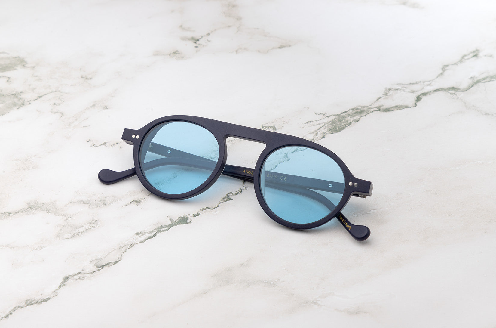 Peter Frank's design results from combining two different molds. The increasing thickness creates a nice detail under the temples and helps to shield the eyes. The well-defined caps, with our unique meandros, decorate the sunglasses.